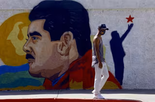 Un mural de Nicolás Maduro en una calle de Venezuela